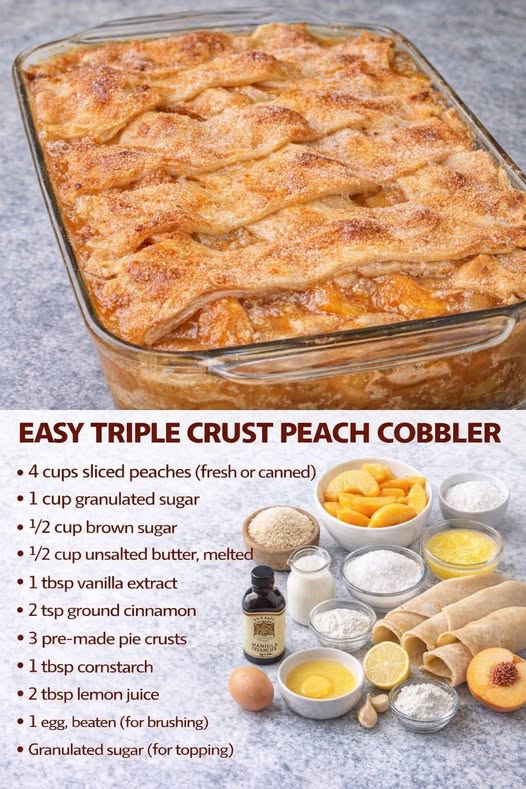 Easy Triple Crust Peach Cobbler